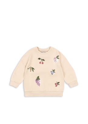 Lou Sequin Sweatshirt marki Konges Slojd to klasyczna, miękka bluza dresowa z dekoracyjnymi aplikacjami z cekinów. Uszyta z 90% certyfikowanej organicznej bawełny OCS, przyjemna dla skóry i idealna na co dzień. W rozmiarach do 18 miesięcy posiada napy na ramieniu, które ułatwiają zakładanie przez małą główkę.