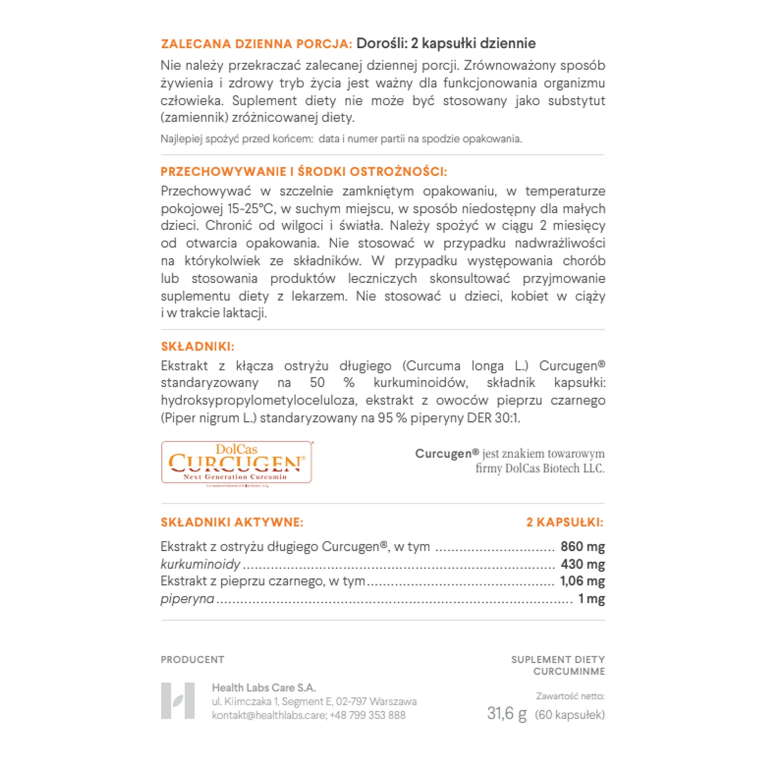 - zawiera wysoko skoncentrowany ekstrakt Curcugen® z kurkumy,