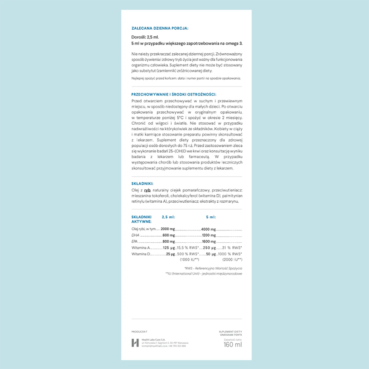 OmegaMe Forte 160 ml to suplement diety w płynie opracowany z myślą o osobach dorosłych, które chcą w prosty sposób uzupełniać dietę w wysoko skoncentrowane kwasy omega-3. To dobry wybór dla osób, które jedzą mało tłustych ryb albo szukają wygodnej codziennej suplementacji wspierającej serce, mózg, wzrok i odporność.