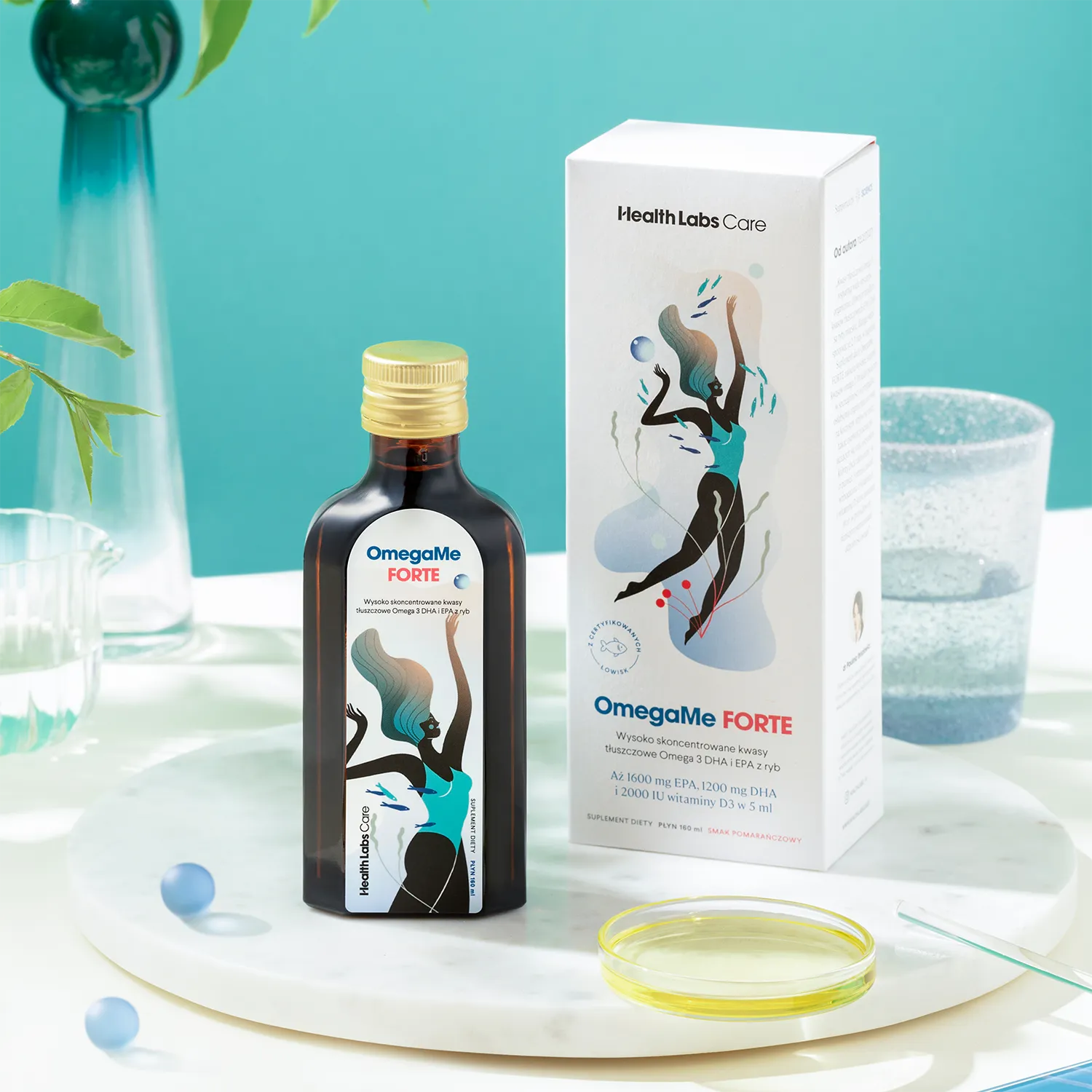 OmegaMe Forte 160 ml to suplement diety w płynie dla osób dorosłych, stworzony z myślą o wsparciu serca, mózgu, wzroku i odporności. Wysoko skoncentrowana formuła z kwasami omega-3 EPA i DHA oraz witaminami A i D pomaga uzupełnić codzienną dietę w składniki ważne dla prawidłowego funkcjonowania organizmu, szczególnie wtedy, gdy spożycie tłustych ryb jest zbyt małe. :contentReference[oaicite:0]{index=0}