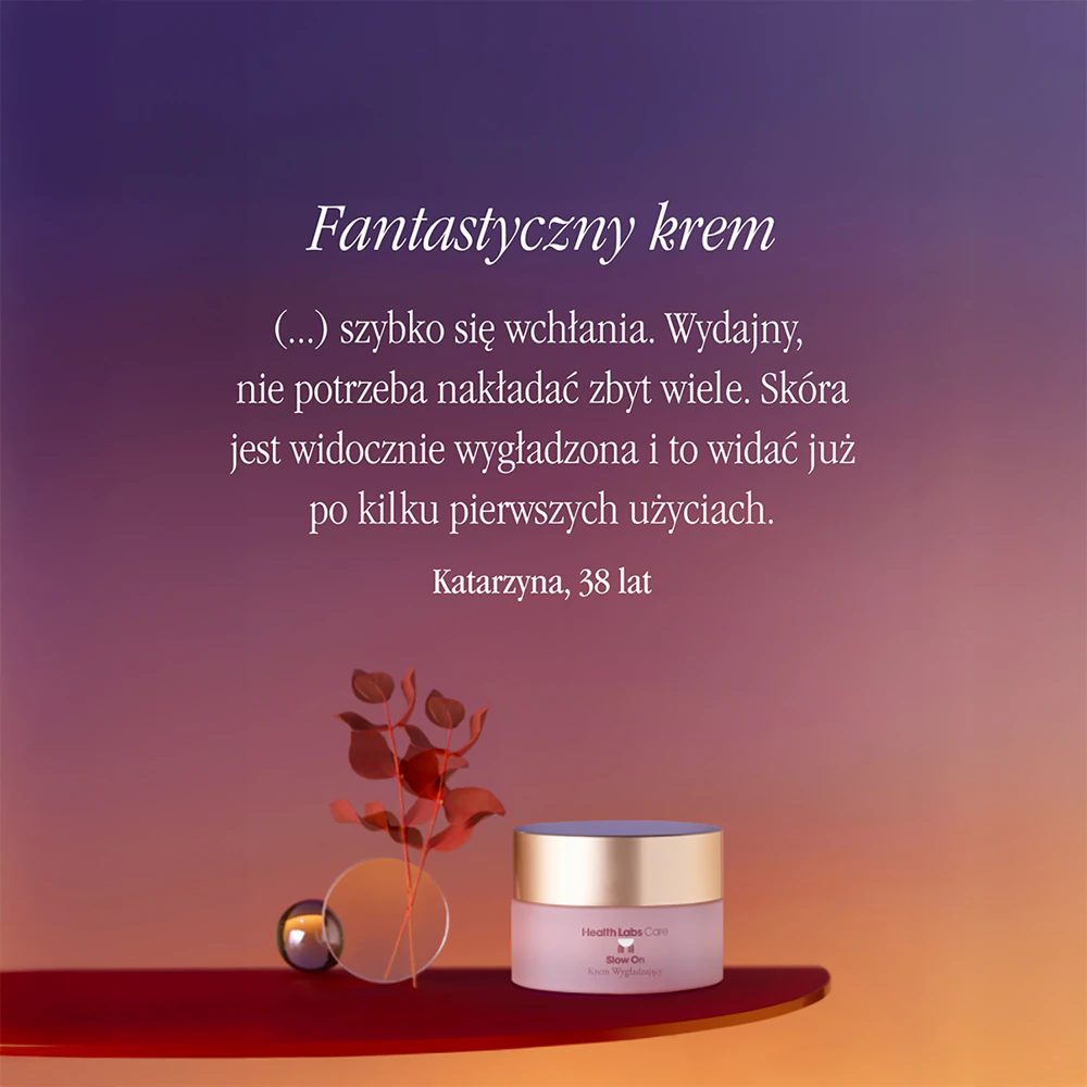 Slow On krem wygładzający 50 ml to krem do twarzy opracowany z myślą o skórze z pierwszymi oznakami starzenia, która stopniowo traci jędrność i naturalny blask. To dobry wybór dla osób, które chcą wygładzić zmarszczki, poprawić strukturę skóry i zadbać o bardziej napięty, świeży wygląd cery.