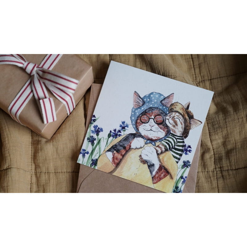 Urocza kartka dla Babci „Babcia Kot” od Hi Little – całoroczna (bez gotowych napisów), z miejscem na własne życzenia. W zestawie koperta w naturalnym kolorze.