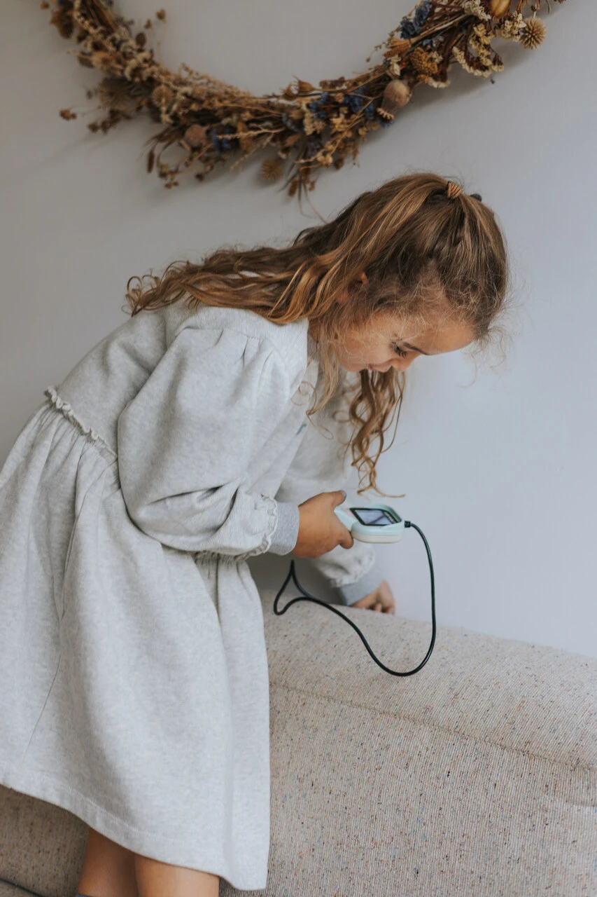 KidyExplore ma oświetlenie LED z 3 poziomami jasności, zoom x4 oraz wodoodporny kabel i kamerę. Dzięki temu sprawdzi się zarówno w domu, jak i podczas zabawy na zewnątrz, zwłaszcza przy obserwowaniu ciemniejszych lub trudno dostępnych miejsc.