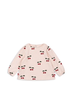 Bluzka z długim rękawem DREY SLIT TEE GOTS marki Konges Slojd z uroczym wiśniowym printem MA GRANDE CERISE PEONY. Uszyta w 100% z organicznej bawełny GOTS – miękka, wygodna i idealna na co dzień dla dziewczynki.