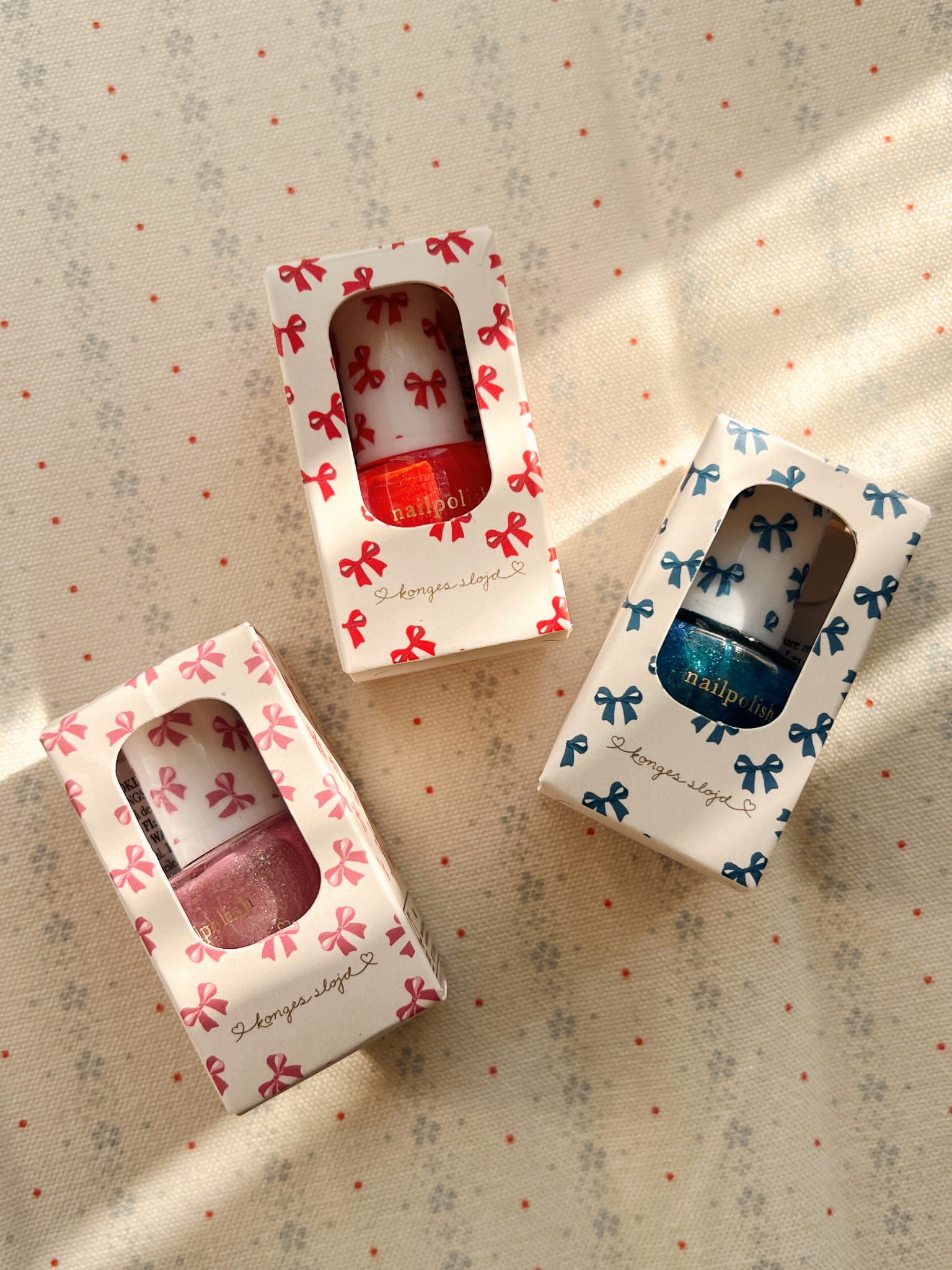 Brokatowy lakier do paznokci peel-off dla dzieci od Konges Slojd. Na bazie wody, łatwy do nałożenia i prosty do usunięcia – wystarczy delikatnie odkleić. Dla dzieci od 3 lat. Produkt oznaczony CE.