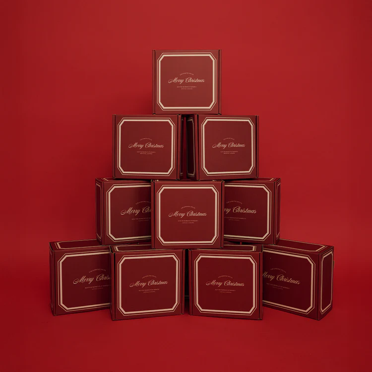- Gotowy prezent – eleganckie, bordowe pudełko z motywem świątecznym prezentuje się bardzo efektownie, nie wymaga dodatkowego pakowania.