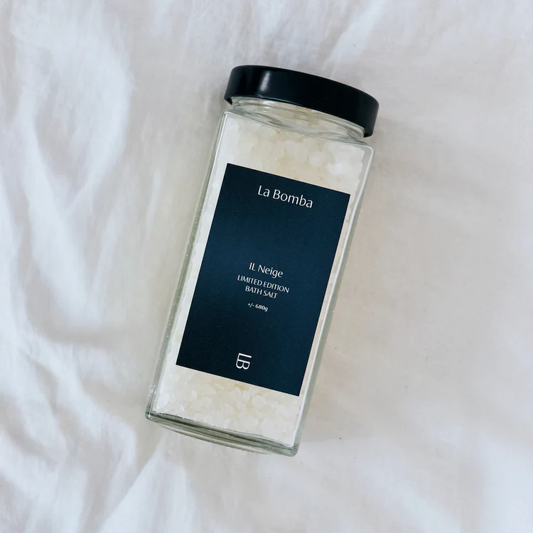 La Bomba Il Neige Bath Salt to morska sól do kąpieli łącząca sól morską z odżywczym maceratem z bursztynu i delikatnie błyszczącym pigmentem mineralnym. Rozluźnia napięte mięśnie, wspiera regenerację skóry i pozostawia ją gładką, miękką oraz subtelnie rozświetloną. Zapach kadzidła, frezji i piżma otula zmysły i wprowadza w stan głębokiego relaksu.