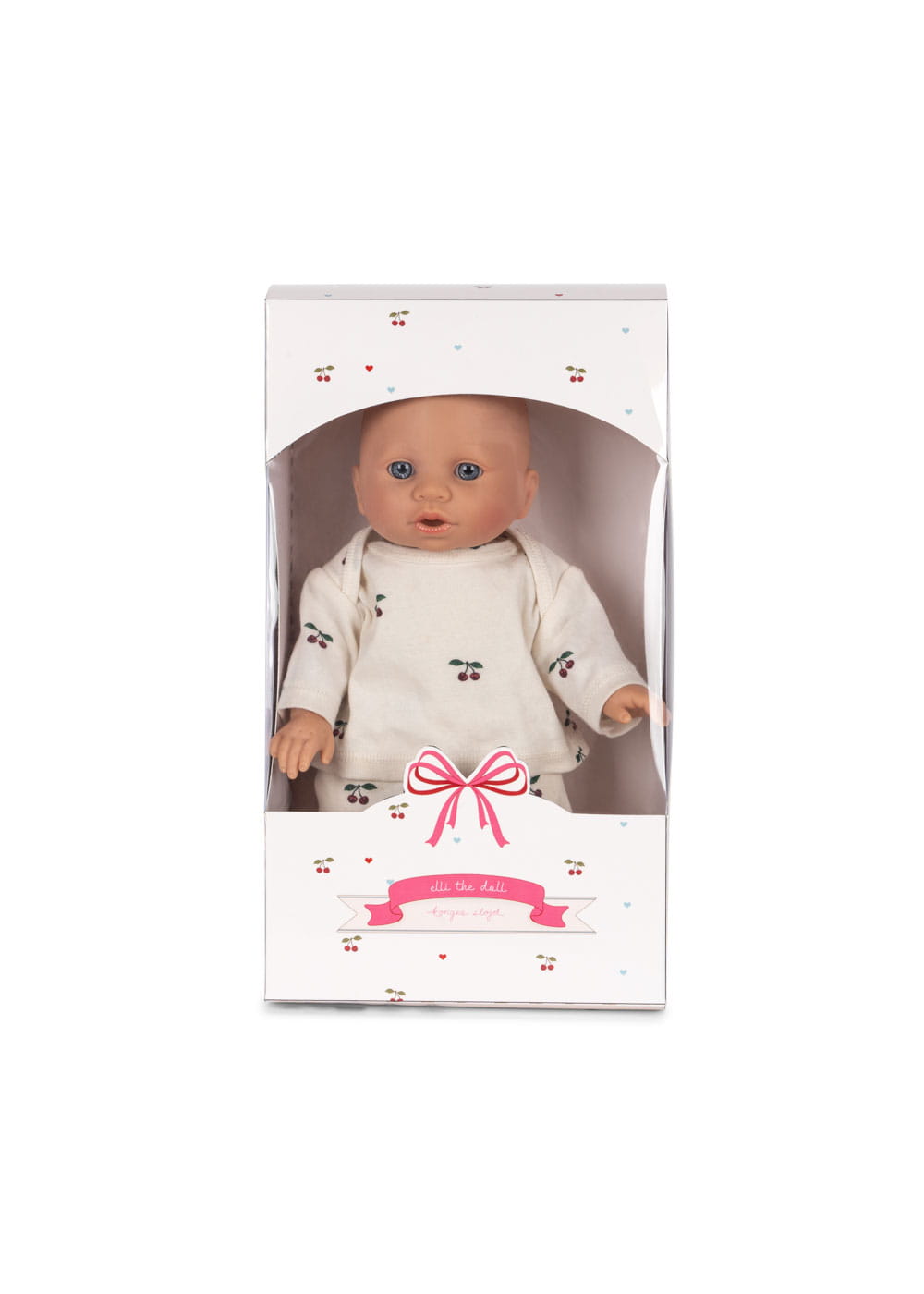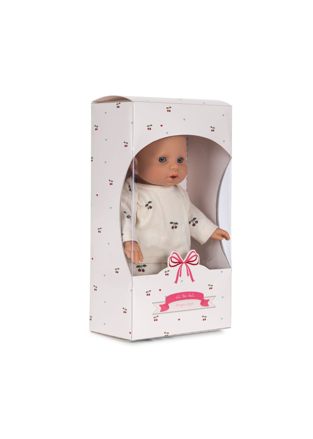 Elli The Doll to miękka, przytulna lalka, która szybko staje się ukochaną towarzyszką codziennych zabaw. Ubrana jest w uroczy zestaw z bawełny organicznej (bluzka i spodnie), który dziecko może samodzielnie zakładać i zdejmować. W zestawie znajduje się również dopasowany smoczek – dzięki niemu zabawa w opiekę nad „niemowlakiem” staje się jeszcze bardziej realistyczna.