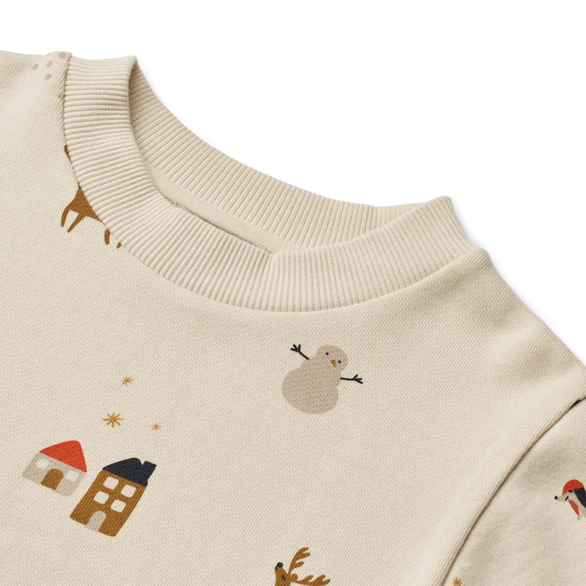 Liewood Thora Printed Sweatshirt to miękka, dziecięca bluza z nadrukiem uszyta z organicznej dzianiny dresowej z certyfikatem GOTS. Luźny krój, obniżona linia ramion oraz ściągacze przy mankietach i na dole sprawiają, że jest idealna na co dzień – do przedszkola, szkoły i weekendowych wyjść.