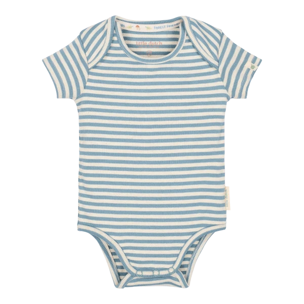 Body z krótkim rękawem w niebieskie paski to wygodny model niemowlęcy na co dzień. Miękka dzianina i praktyczne zapięcie w kroku sprawiają, że body Little Dutch dobrze sprawdza się w domu, na spacerze i podczas codziennego przebierania.