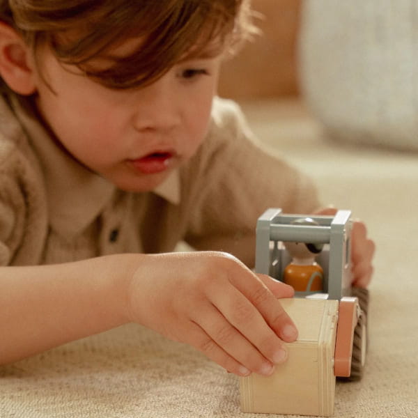 Ciężarówka z dźwigiem FSC to świetna propozycja dla dzieci, które z zaciekawieniem obserwują maszyny i pojazdy pracujące na budowie. Taki motyw od razu pobudza wyobraźnię i daje mnóstwo możliwości tworzenia własnych historii związanych z transportem, przenoszeniem elementów i organizowaniem prac na placu budowy. To zabawka, która angażuje na dłużej, bo wokół jednego pojazdu dziecko może zbudować cały świat pełen ruchu, zadań i pomysłów.