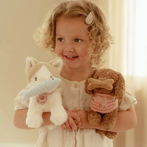 Little Dutch Jackie przytulanka pies w torbie to miękki zestaw dla dzieci, które lubią przytulanki i zabawę w opiekę nad swoim zwierzakiem. W komplecie znajduje się piesek Jackie, kwiatowa torba transportowa oraz materiałowa kostka, dzięki czemu dziecko może zabrać swojego pupila na spacer, wyjazd albo do zabawy w domu.