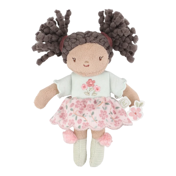 Little Dutch Laleczka Evi 10 cm (GRS) to urocza, miękka mini-laleczka idealna do zabrania wszędzie. Evi ma piękne loki i delikatną opaskę, nosi kwiatową spódniczkę oraz słodkie buciki. Świetna na prezent i jako „pierwsza przyjaciółka” na spacer lub podróż.