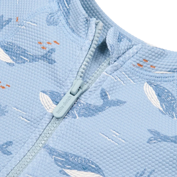 Wariant Ocean Splash utrzymany jest w niebieskiej tonacji z morskim motywem. Praktyczny fason i zamek pomagają w szybkim ubieraniu i zdejmowaniu stroju, także po kąpieli.