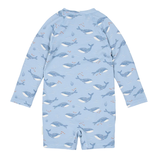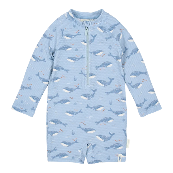 Strój kąpielowy z długim rękawem Ocean Splash UPF40+ to wygodny model dla malucha na plażę, basen i wakacyjne wyjazdy. Długi rękaw daje większe osłonięcie, a elastyczny, szybkoschnący materiał dobrze sprawdza się podczas zabawy w wodzie.
