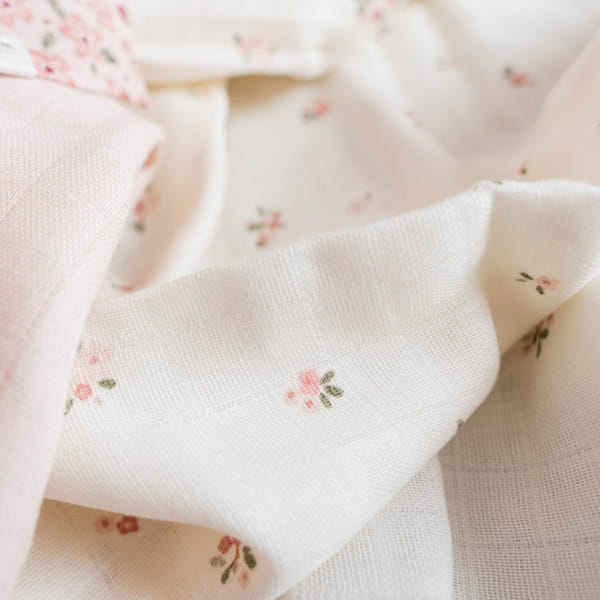 Wielofunkcyjny otulacz muślinowy Little Dutch 120x120 cm w wzór Fairy Blossom. 100% bawełna organiczna, OEKO-TEX – miękki, chłonny i szybkoschnący, idealny do wyprawki.