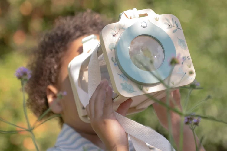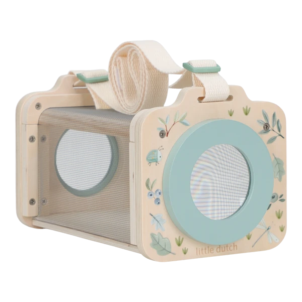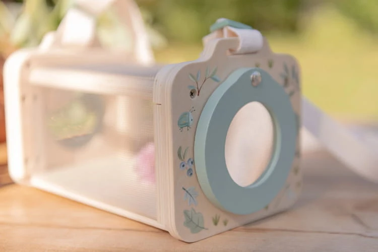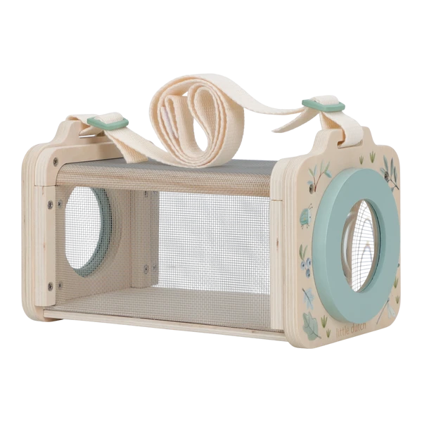 Little Dutch pojemnik do obserwacji owadów Forest Friends FSC to praktyczny pojemnik dla małych odkrywców przyrody. Model ma drewnianą pokrywkę z lupą, otwory wentylacyjne i kartę owadów, dzięki czemu dziecko może z bliska oglądać znalezione okazy i poznawać świat natury podczas spacerów i zabawy na zewnątrz.