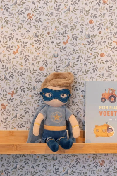 Superhero Jim Little Dutch to miękka lalka-przytulanka 35 cm z peleryną i maską, gotowa na każdą „misję ratunkową” i na spokojne zasypianie po zabawie. Idealna do odgrywania ról, budowania wyobraźni i codziennego przytulania. Dla dzieci od 12 miesięcy. Wypełnienie z poliestru GRS.