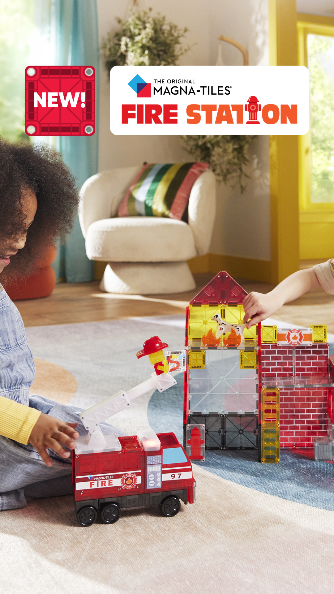 MAGNA-TILES® Fire Station 50 el. to idealny wybór dla dzieci, które uwielbiają pojazdy ratunkowe, akcję i budowanie – świetny pomysł na prezent, który bawi i uczy jednocześnie.