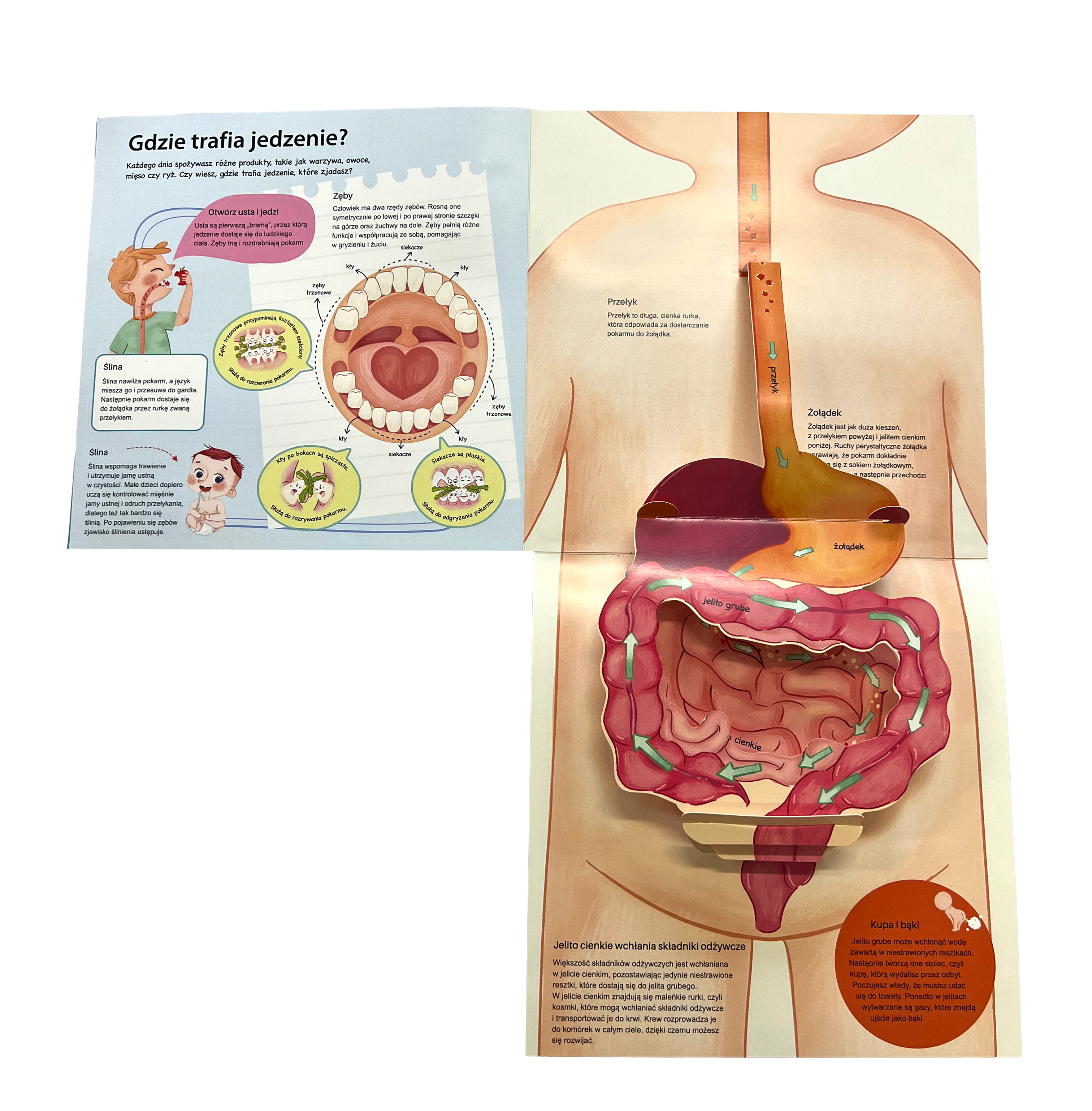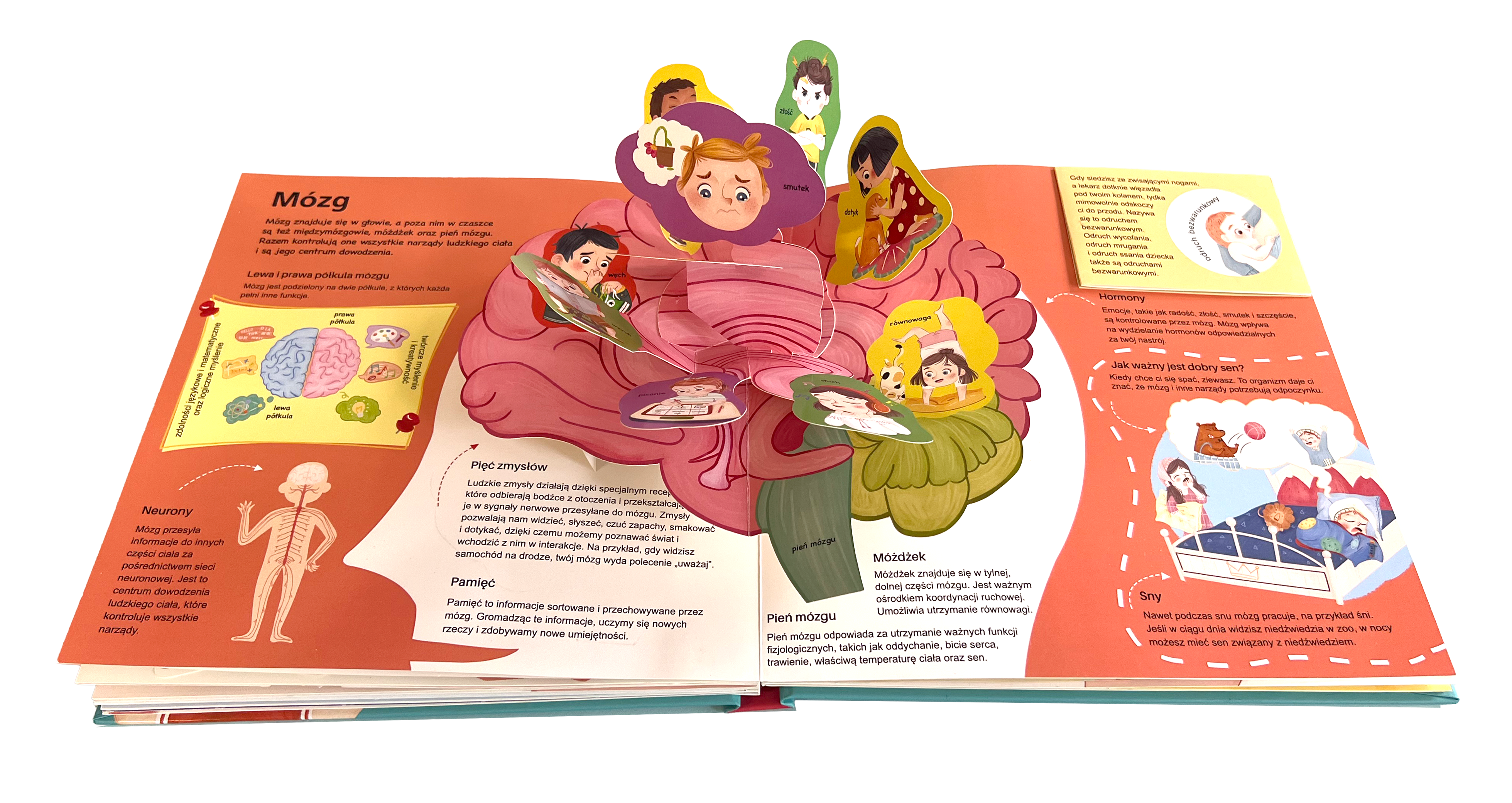 Moje ciało 3D to książka dla dzieci, która w przystępny i angażujący sposób przybliża temat ludzkiego ciała. Dzięki okienkom oraz ruchomym elementom dziecko może poznawać kolejne zagadnienia przez oglądanie, odkrywanie i aktywną zabawę.