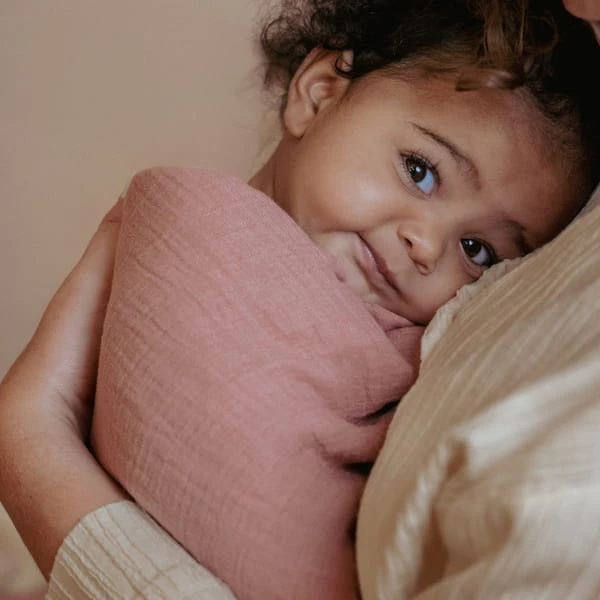 Otulacz muślinowy w kolorze pudrowego różu to miękki i wielofunkcyjny element wyprawki, uszyty z 100% bawełny organicznej. Sprawdzi się na co dzień po kąpieli, przy przewijaniu i podczas karmienia.