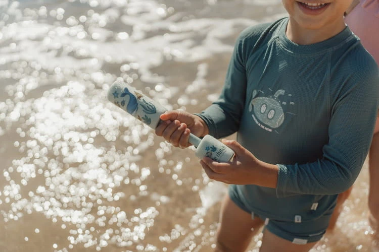 Model wyróżnia się pastelową, morską kolorystyką i wzorem z kolekcji Ocean World, dzięki czemu dobrze wpisuje się w letni klimat. Sprawdzi się podczas zabawy w ogrodzie, na plaży i nad wodą.