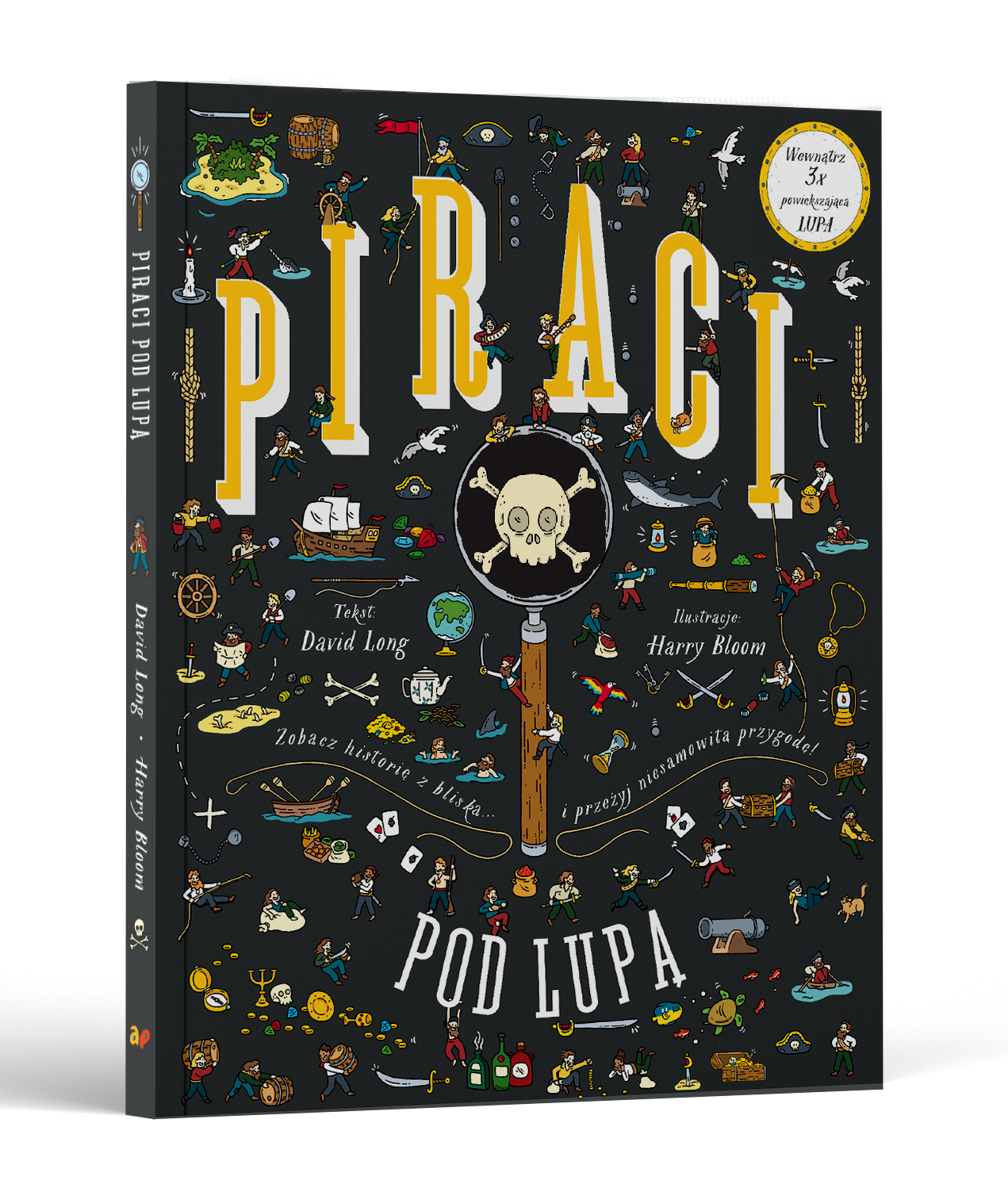 Na kolejnych stronach dziecko poznaje najsłynniejszych piratów oraz kulisy ich życia: tajemnice nawigacji, codzienność na statku, piracki kodeks, sposoby poszukiwania skarbów i walkę o przetrwanie na morzu. Barwne ilustracje kryją ponad 200 ukrytych szczegółów – zadaniem czytelnika jest odnalezienie ich z pomocą lupy i uważnego czytania opisów.