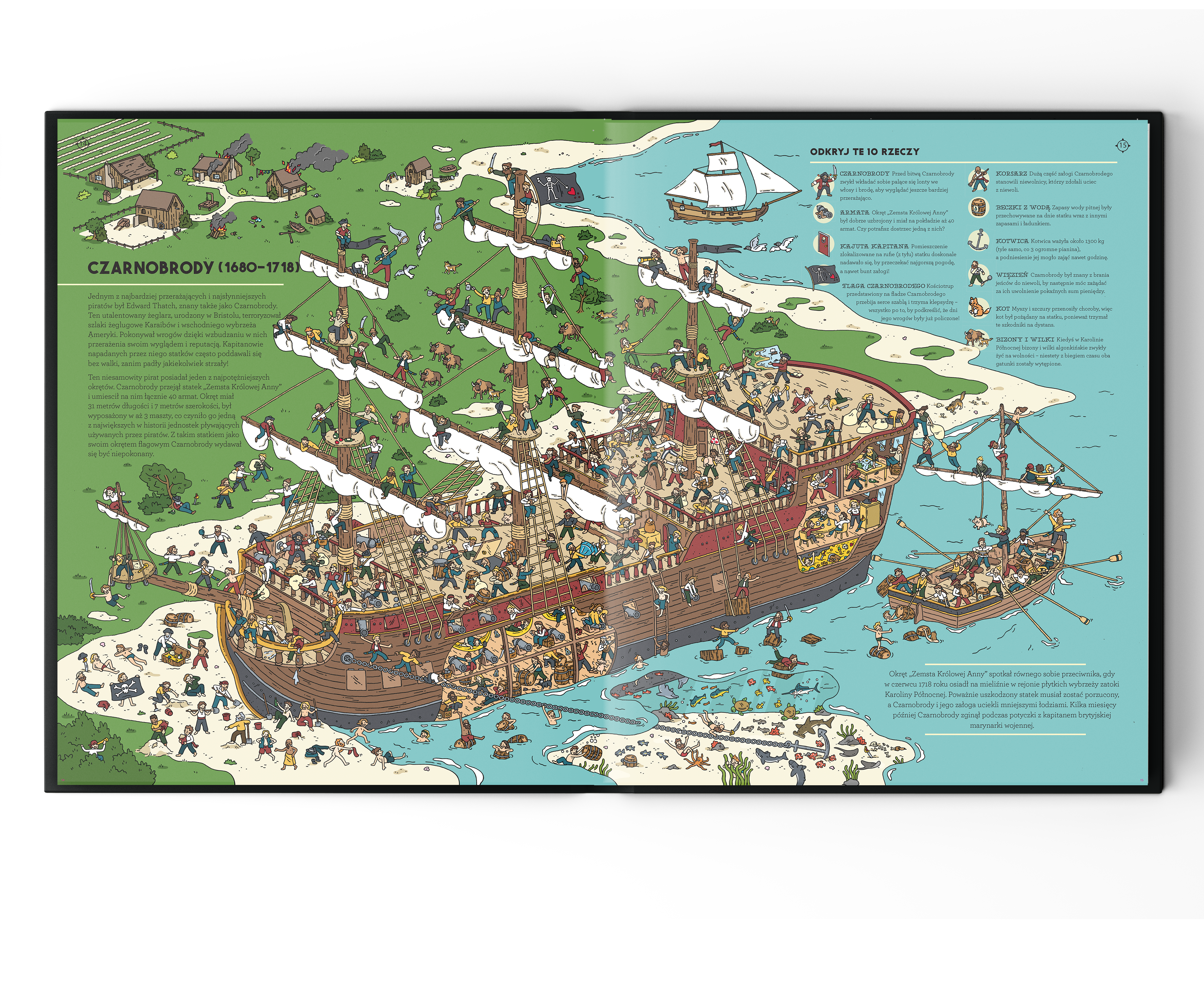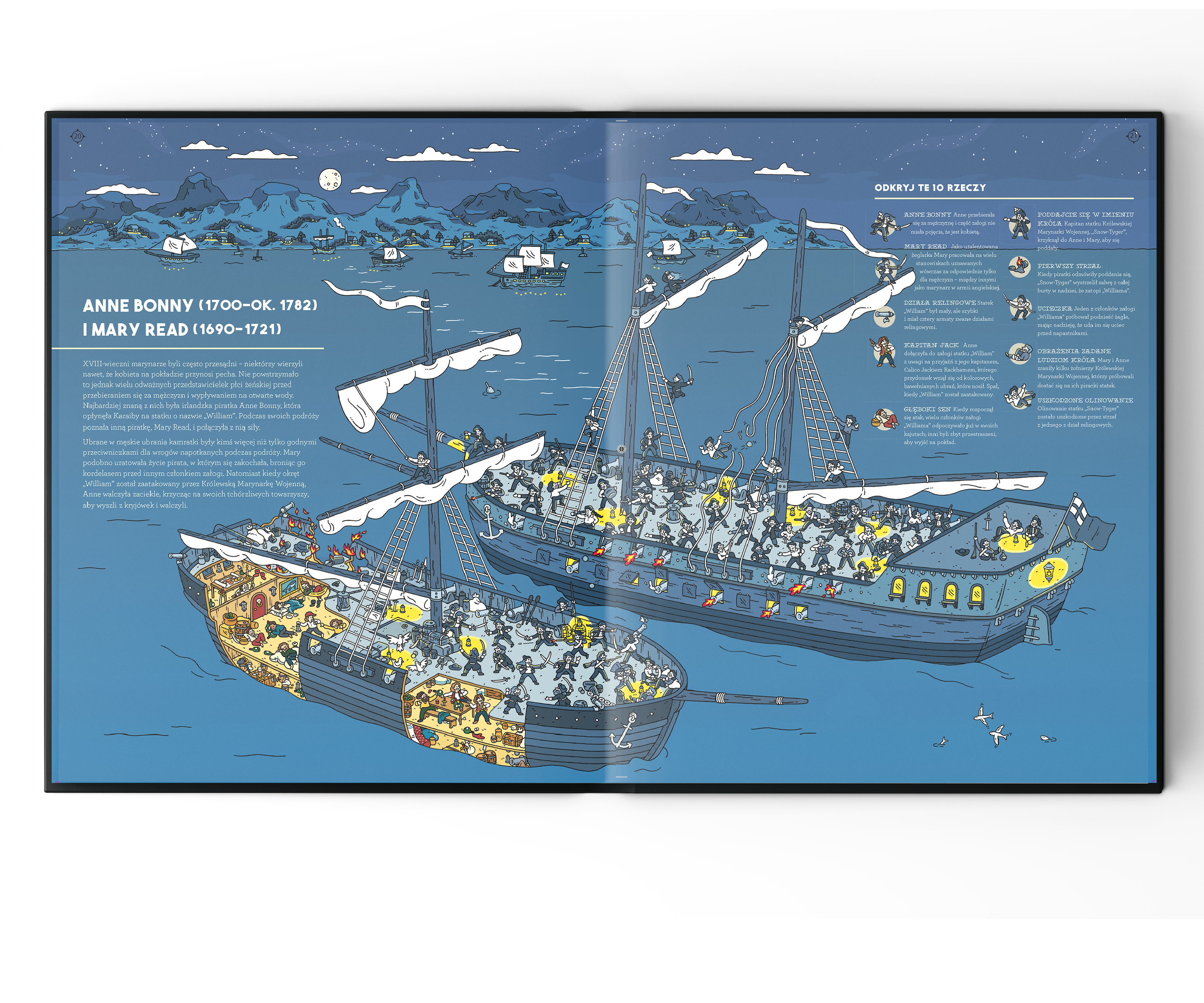 - duże, szczegółowe ilustracje pełne statków, map, skarbów i pirackiej codzienności
