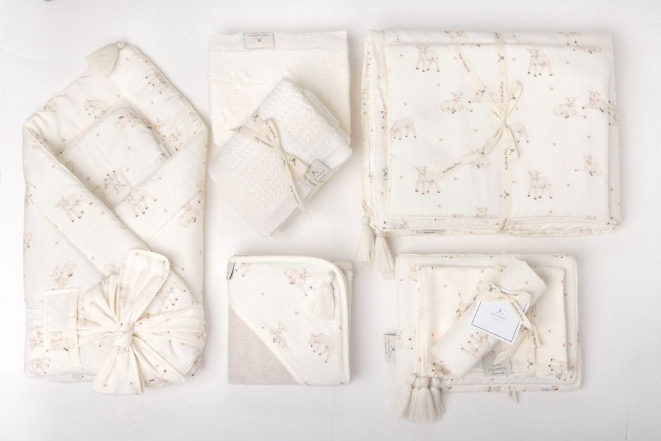 - Uroczy wzór Little Sheeps w kremowym odcieniu,