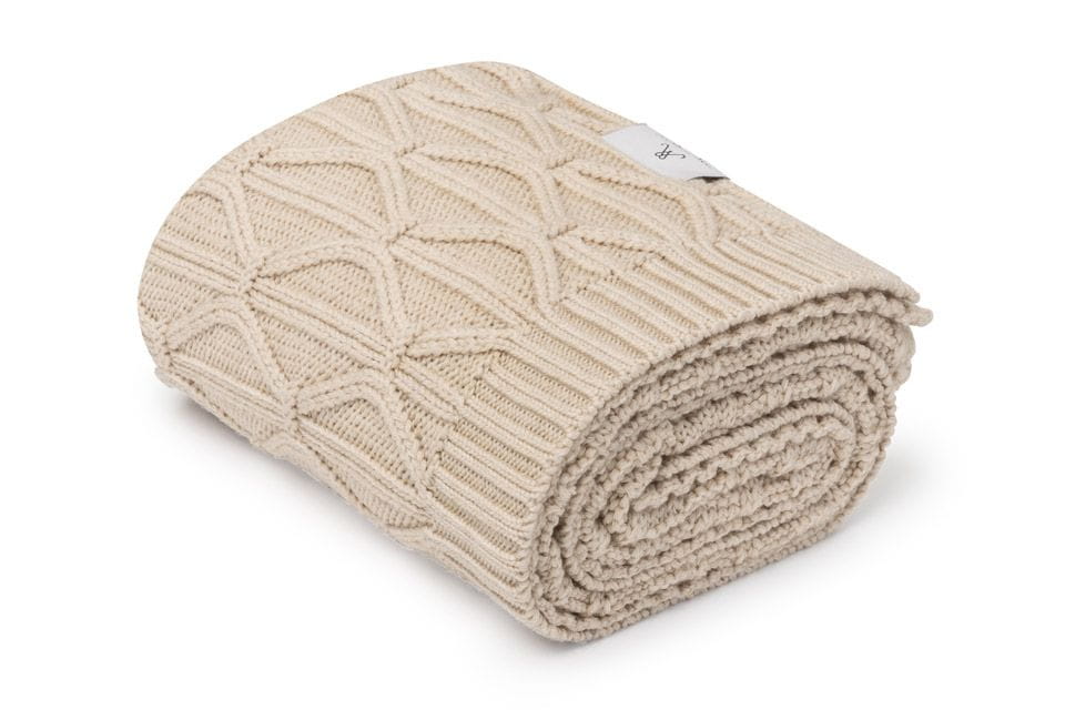 Ciepły kocyk ze 100% wełny merino Warm Beige Wave – My Memi Premium Collection