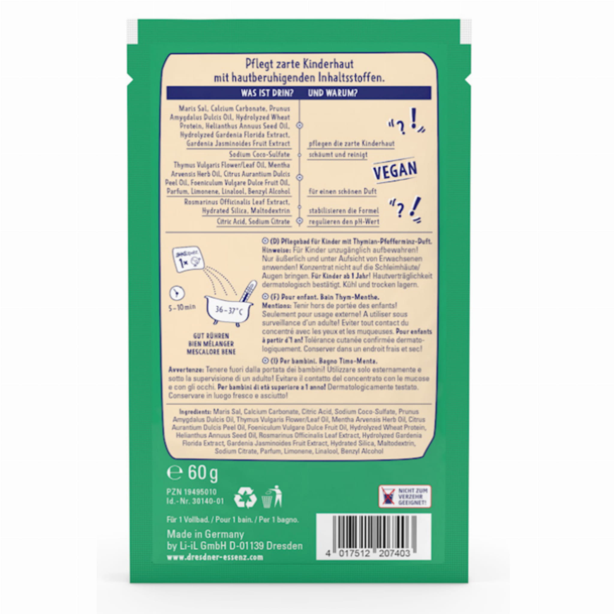 DreckSpatz Dresdner Essenz — sól do kąpieli dla najmłodszych 60 g „Bądź zdrow”