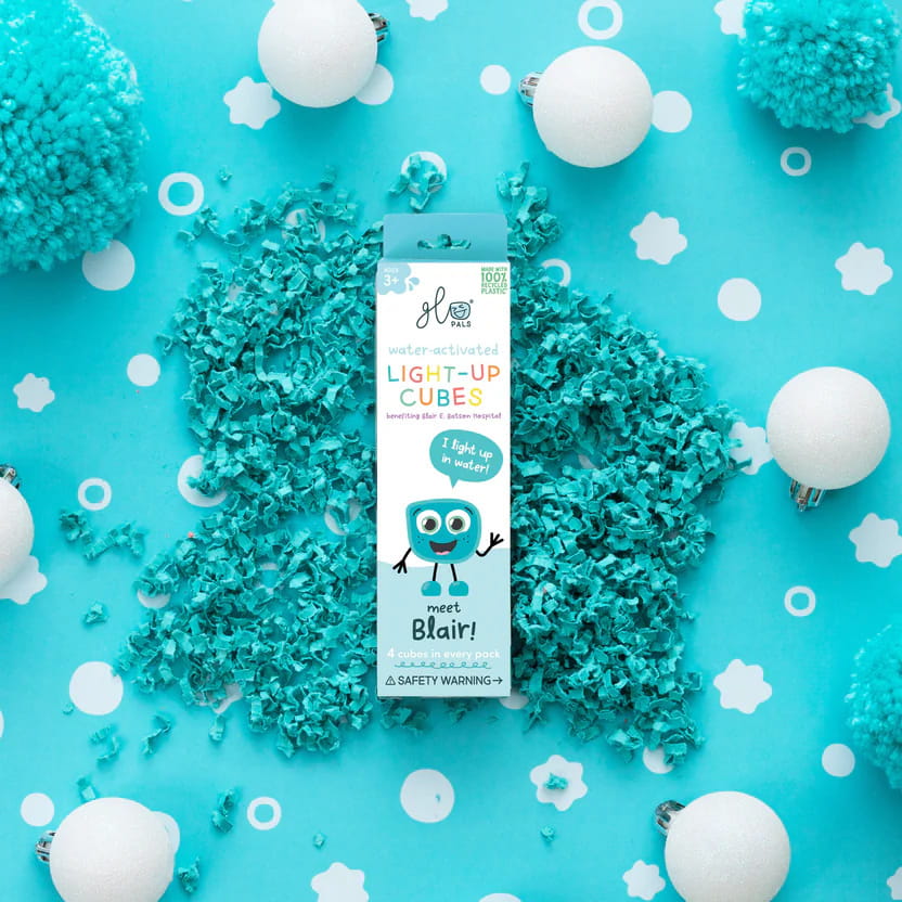 Glo Pals Blair – zestaw 4 świecących w wodzie kostek sensorycznych w kolorze turkusowym.