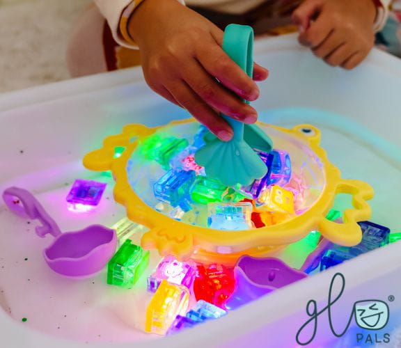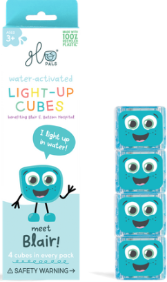 Kostki Glo Pals zostały zaprojektowane jako zabawka do wody dla dzieci powyżej 3. roku życia. Mają zaokrąglone krawędzie i solidną, szczelną obudowę.