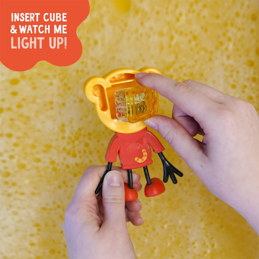 - Zawartość zestawu: 1 postać do kąpieli + 2 kostki sensoryczne świecące w wodzie