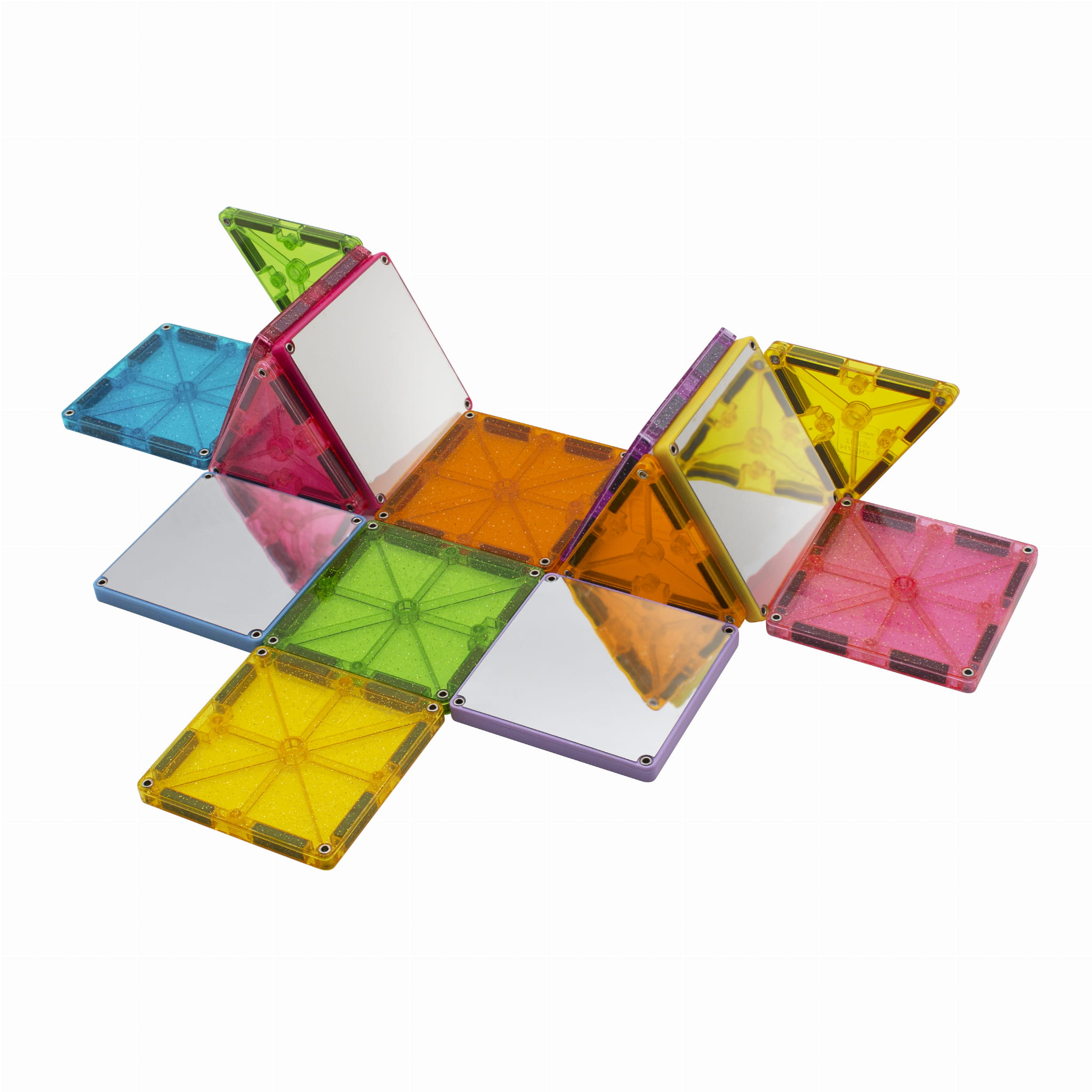 MAGNA-TILES® Stardust to wyjątkowy zestaw magnetycznych klocków, który dodaje budowlom blasku i „efektu wow”. Transparentne płytki z zatopionym brokatem oraz elementy z lustrzanymi powierzchniami pięknie odbijają światło, zachęcając dzieci do eksperymentowania z kolorem, kształtem i światłem. To idealne uzupełnienie klasycznych zestawów MAGNA-TILES® – z błyszczącym akcentem.