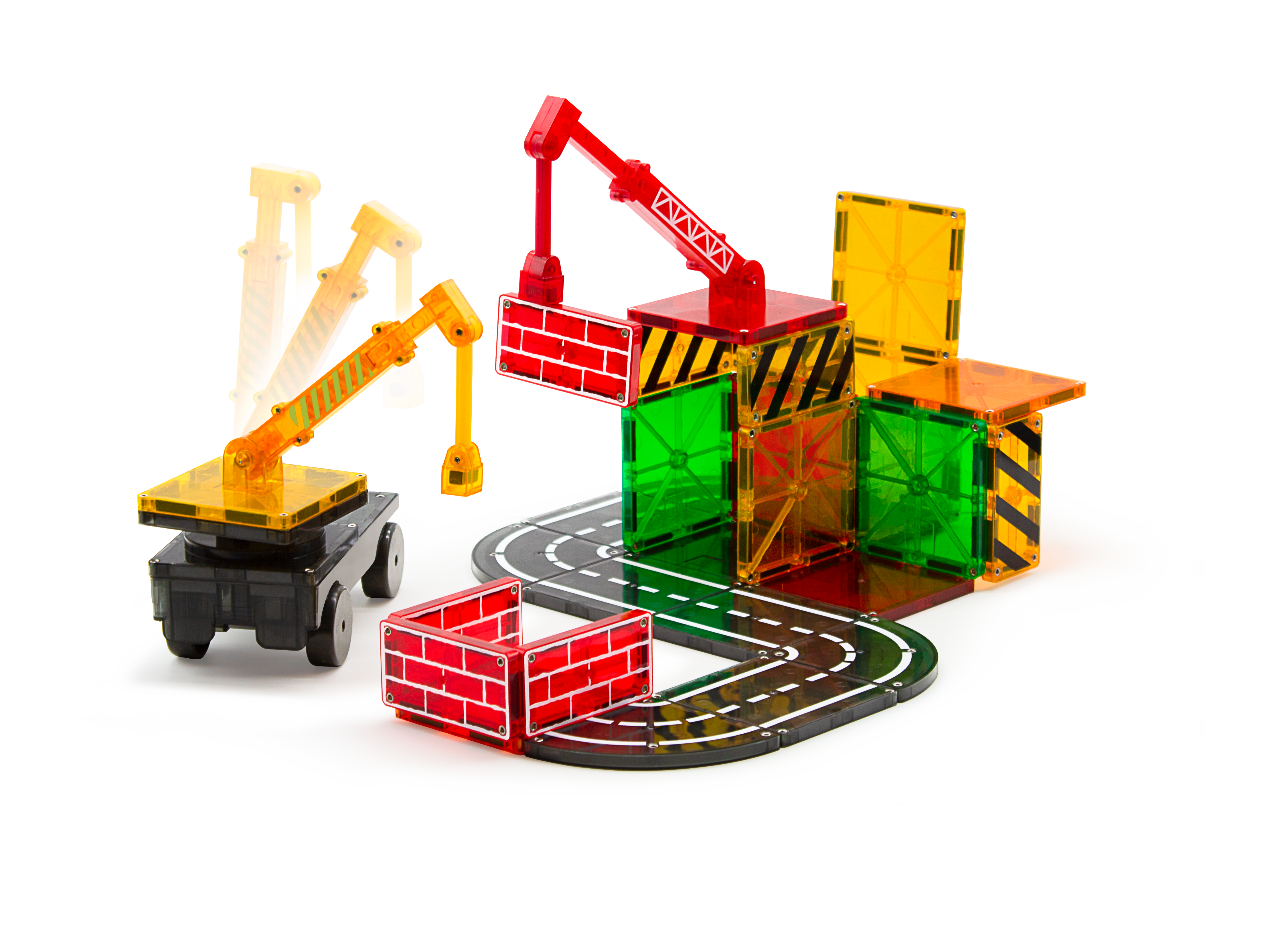 MAGNA-TILES® Builder 32 el. to idealny zestaw dla dzieci, które chcą zaprojektować własne miasto – z dźwigami, ulicami i wysokimi budynkami, które mogą zmieniać się każdego dnia.