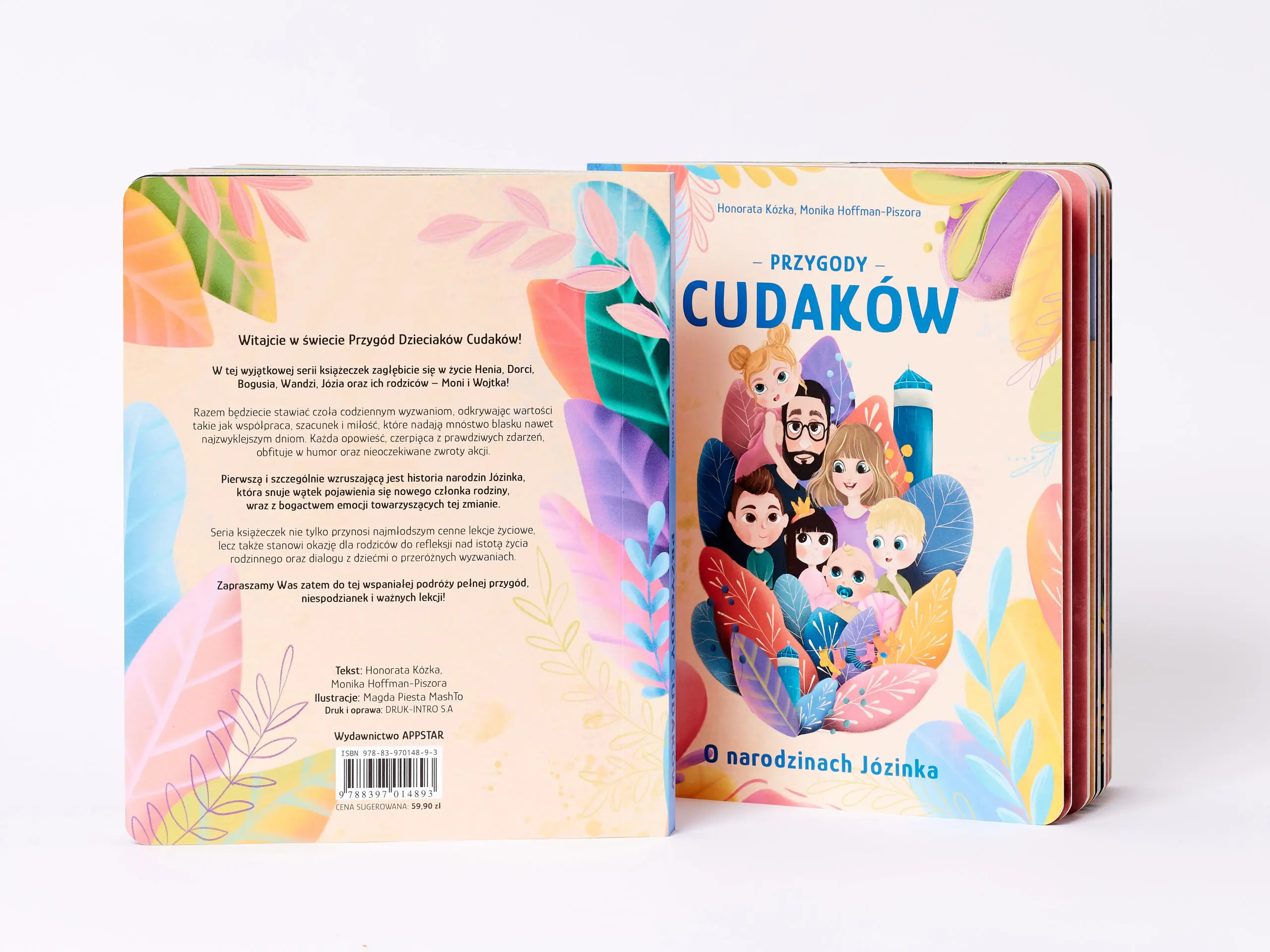 „O narodzinach Józinka” – Przygody Cudaków, Tom I to ciepła, pełna emocji opowieść o pojawieniu się nowego członka rodziny. Kolorowe ilustracje i prosta, zrozumiała narracja pomagają dziecku oswoić radość, ekscytację, ale też zazdrość, która może pojawić się przy narodzinach rodzeństwa.