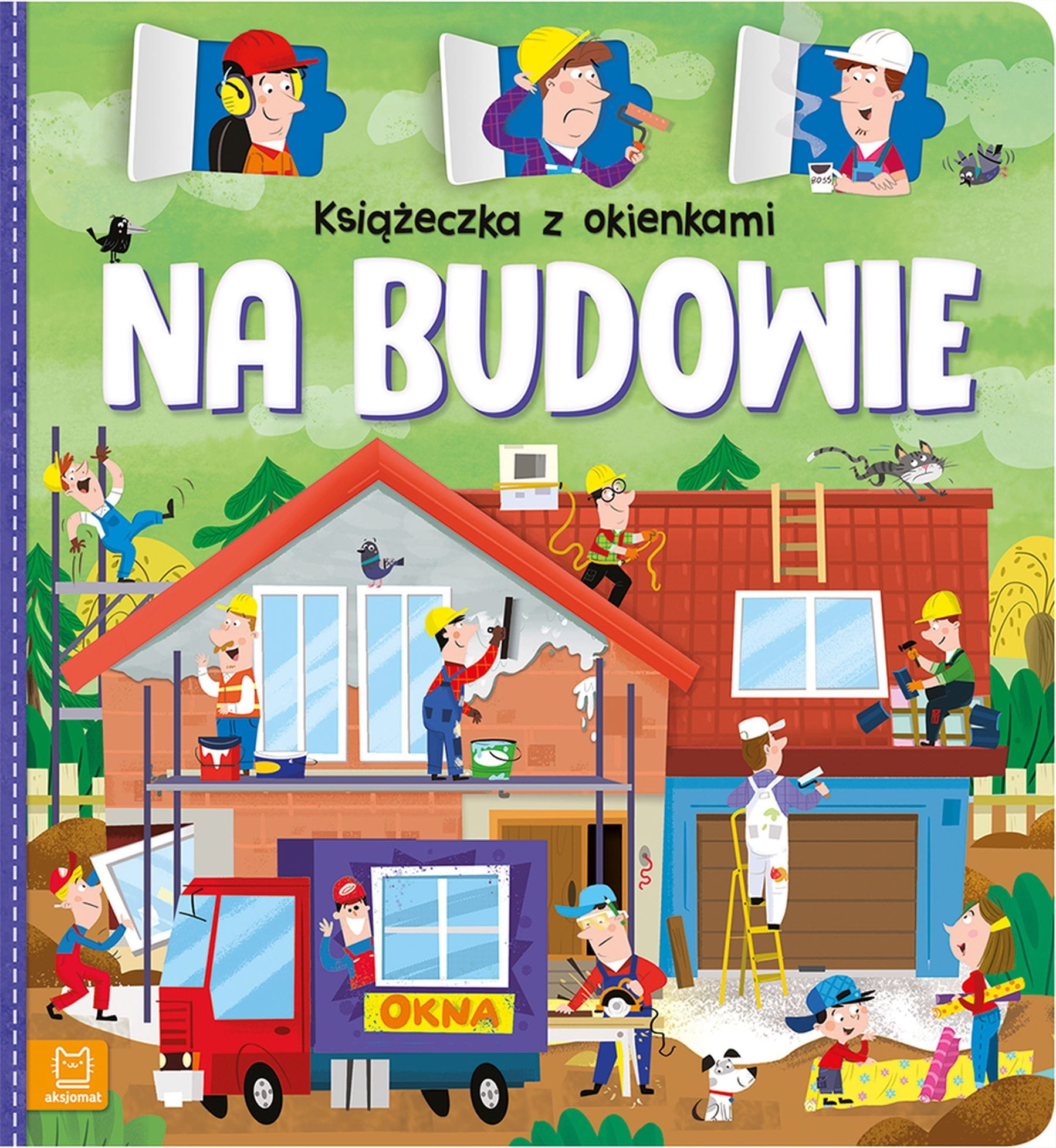 Książeczka z okienkami. Na budowie to wciągająca kartonowa książeczka dla najmłodszych, która pozwala zajrzeć na plac budowy i odkryć, jak pracują koparki, dźwigi i inne maszyny. Każde okienko to nowa ciekawostka!