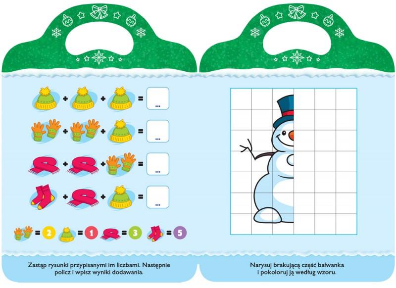 Idealna na zimowe popołudnia: proste zadania logiczne, labirynty, szlaczki i kolorowanki, a do tego arkusz naklejek, który urozmaica zabawę. Format poręczny do plecaka, grube strony, czytelne ilustracje.
