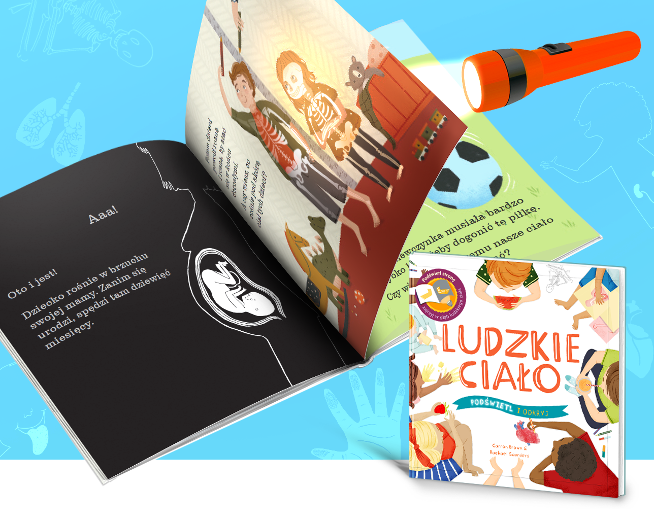 „Ludzkie Ciało. Podświetl i Odkryj.” to połączenie nauki, zabawy i fascynacji światem biologii. Wystarczy latarka, aby rozpocząć niezwykłą podróż po wnętrzu ludzkiego organizmu!