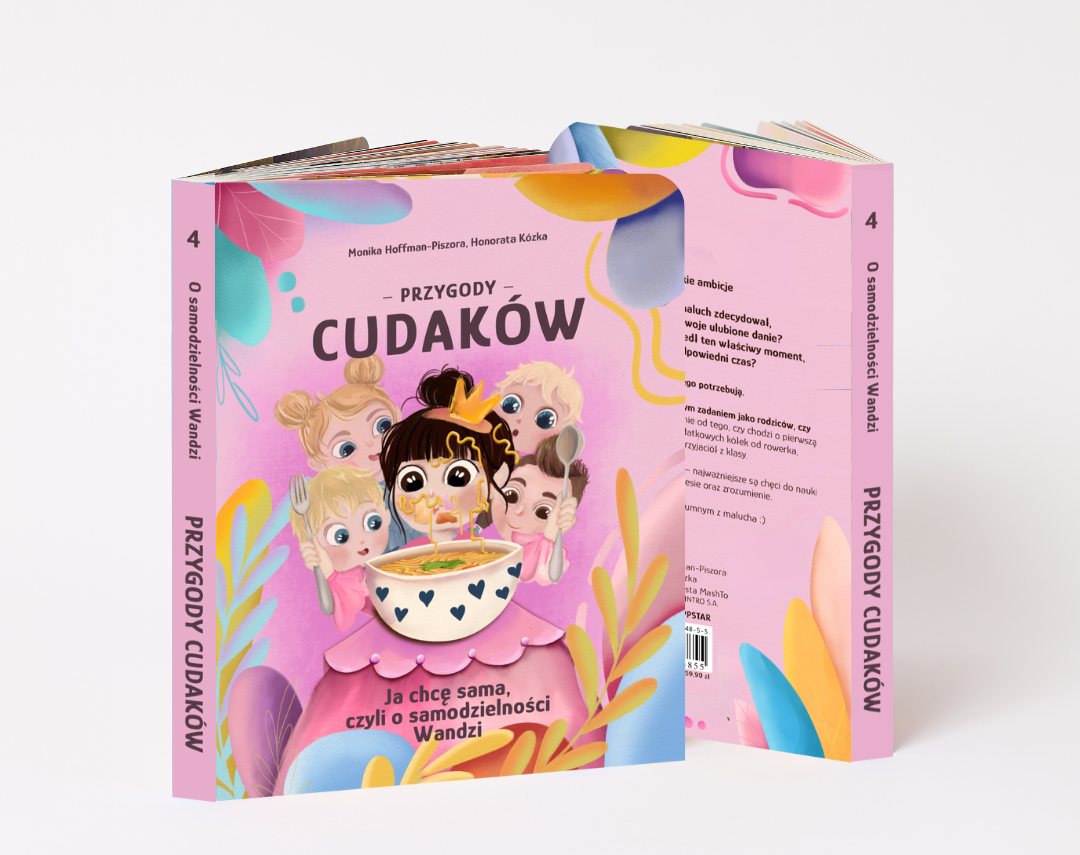 „Ja chcę sama, czyli o samodzielności Wandzi” – Przygody Cudaków, Tom IV to historia o małej Wandzi, która coraz częściej mówi „ja chcę sama!” – przy jedzeniu, zabawie czy nowych wyzwaniach.
