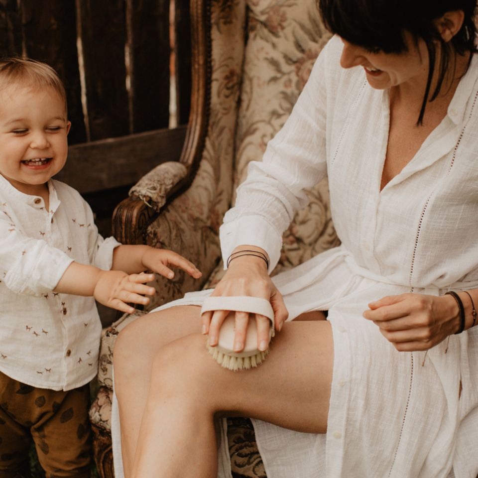 Masaż na sucho z użyciem szczotki My Memi to prosty rytuał, który przynosi widoczne efekty. Wystarczy kilka minut dziennie, aby skóra stała się gładsza, bardziej napięta i promienna. Naturalne włosie Tampico działa pobudzająco, oczyszczająco i relaksująco – to pielęgnacja w duchu slow life i natury.