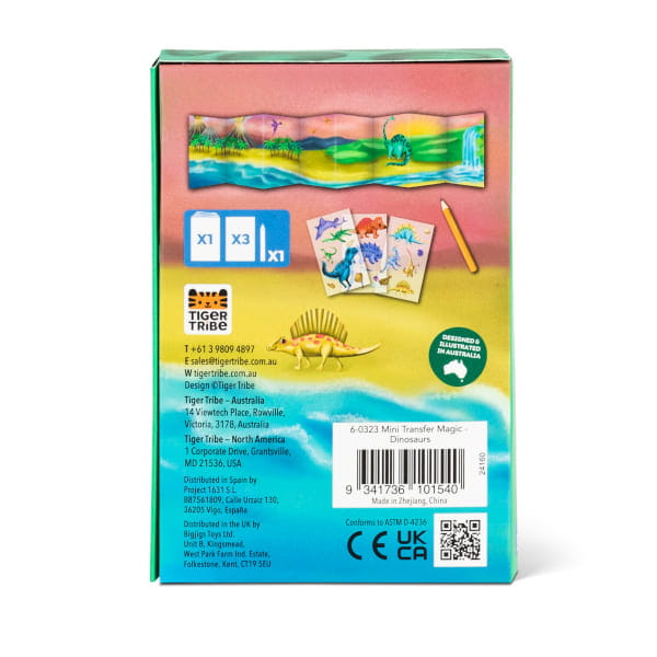 Zestaw kreatywny Tiger Tribe z motywem dinozaurów to doskonała propozycja dla małych artystów. Dzięki zastosowaniu folii transferowej dziecko może w prosty sposób tworzyć efektowne, kolorowe ilustracje.