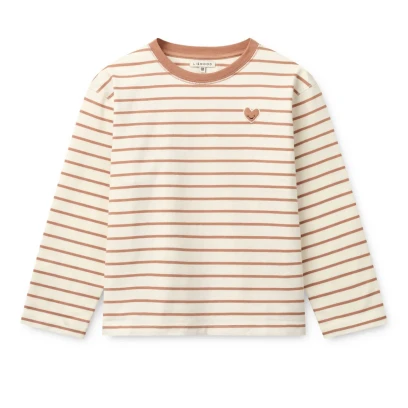Liewood Tyler Stripe LS T-shirt to dziecięca koszulka z długim rękawem wykonana z miękkiej, certyfikowanej bawełny organicznej. Klasyczny wzór w paski z motywem serca w kolorach róż toskański / kremowy sprawdzi się idealnie na co dzień.
