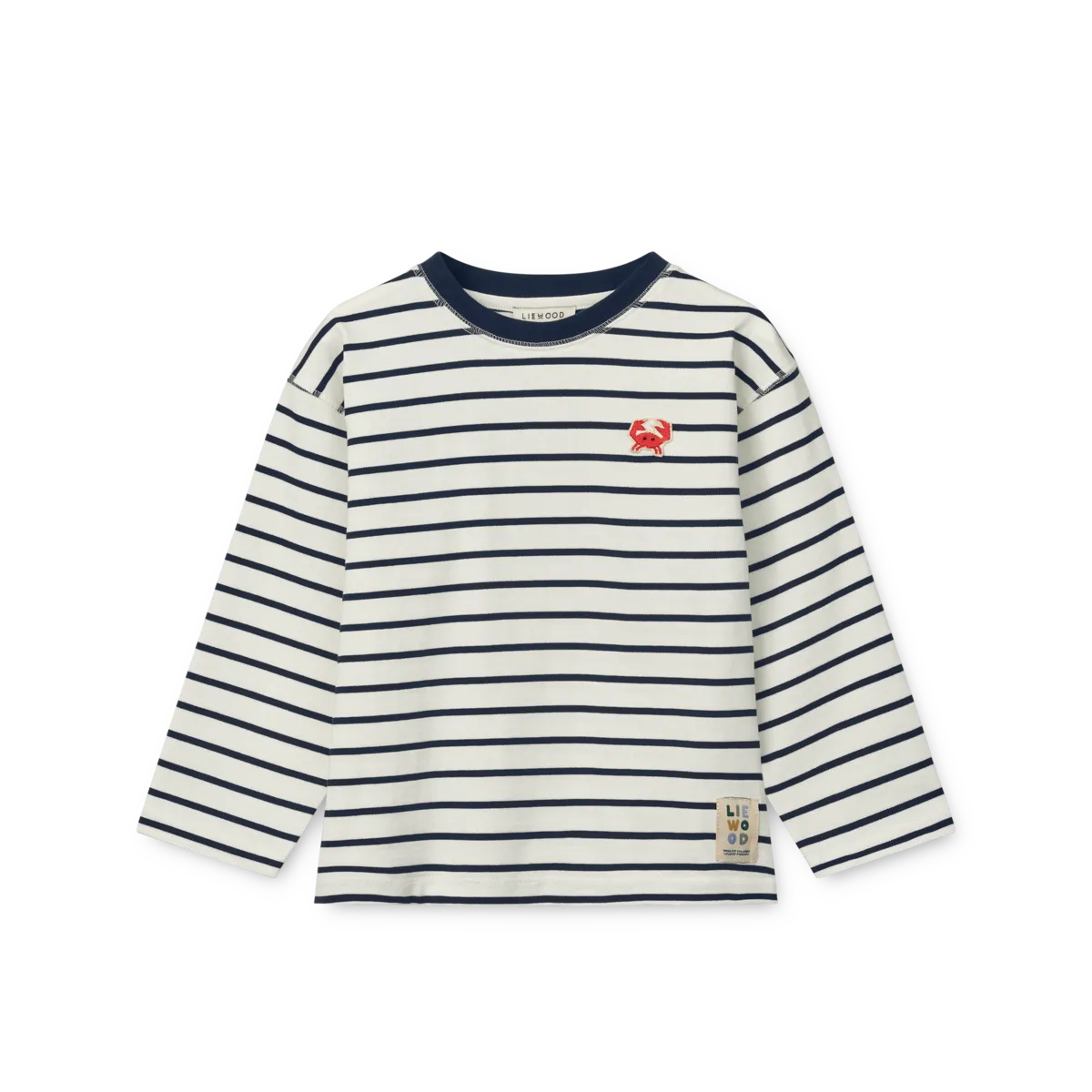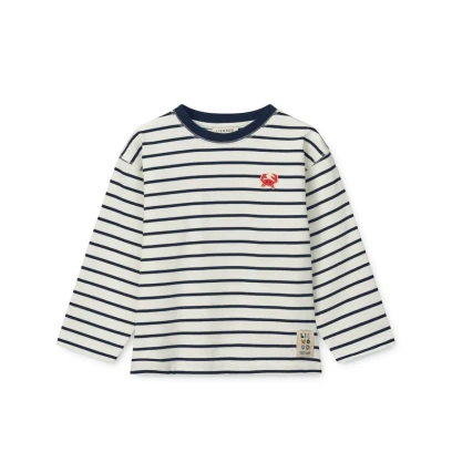 Liewood Tyler Stripe LS T-shirt to stylowa koszulka z długim rękawem dla dzieci, wykonana z miękkiej, wysokiej jakości bawełny. Klasyczne granatowo-kremowe paski nadają jej ponadczasowy charakter, idealny na co dzień i do bardziej eleganckich stylizacji.