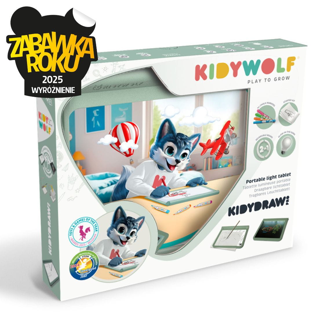 Kidydraw to podświetlany tablet stworzony z myślą o dzieciach, które uczą się pisać, rysować i rozwijać precyzję ruchów. Dzięki lekkiej formie i prostemu sposobowi użycia dobrze sprawdza się zarówno w domu, jak i poza nim.