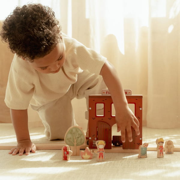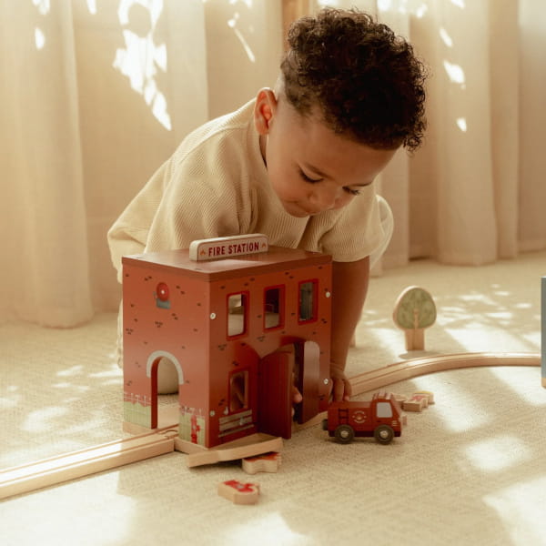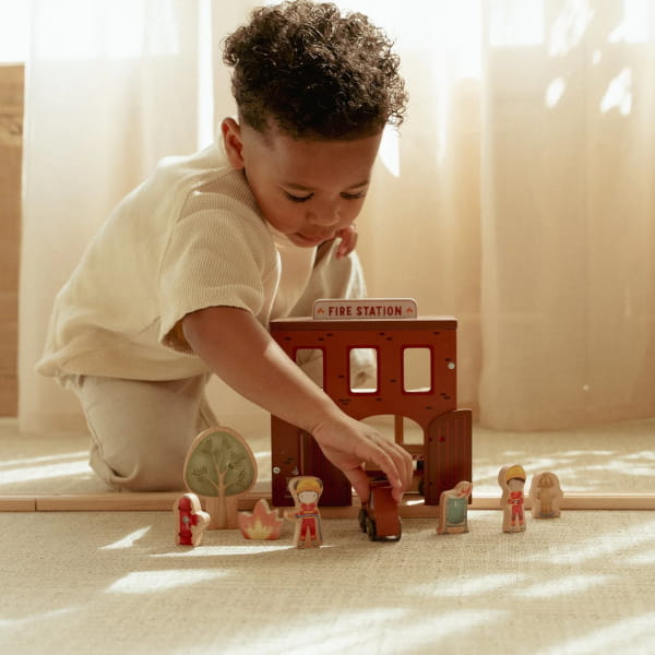 Remiza strażacka FSC to świetna propozycja dla dzieci, które z zaciekawieniem obserwują wozy strażackie, akcje ratunkowe i cały świat związany ze strażą pożarną. Taki motyw od razu pobudza wyobraźnię i daje dziecku mnóstwo możliwości tworzenia własnych scenariuszy zabawy — od alarmu i przygotowania do akcji, po ratowanie, organizowanie pracy strażaków i budowanie własnej bazy pełnej wydarzeń.