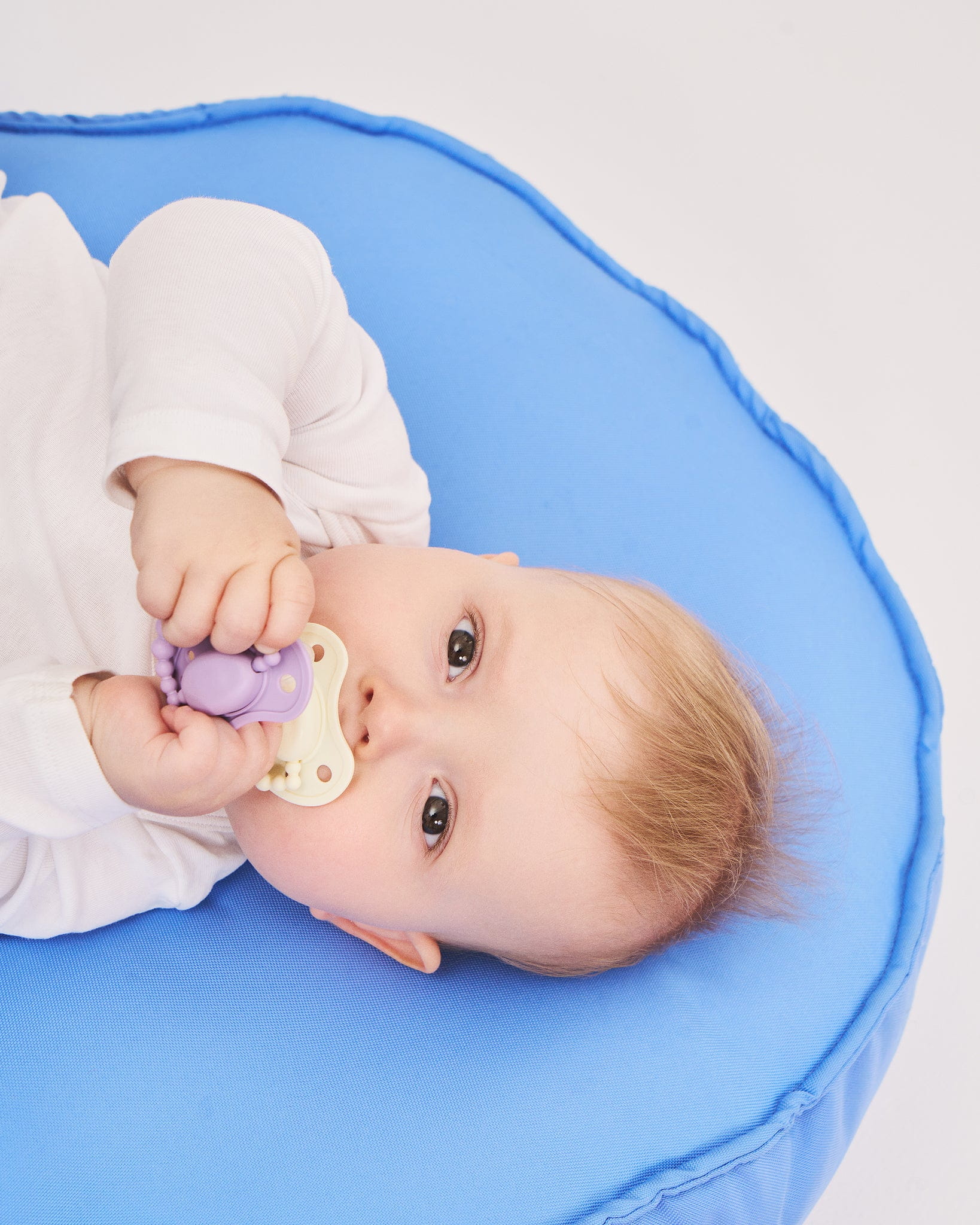 - Używaj wyłącznie dedykowanych uchwytów do smoczka zgodnych z normą EN 12586; nigdy nie przywiązuj do wstążek ani pasków.