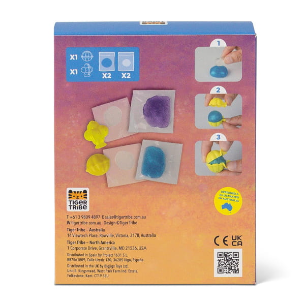 Mini zestaw kreatywny, z którym dziecko stworzy 2 połyskujące, odbijające się piłeczki – jedną klasyczną i drugą o zupełnie nieprzewidywalnym odbiciu. Szybka, angażująca zabawa łącząca eksperyment i kreatywność (kulki gotowe w mniej niż godzinę).