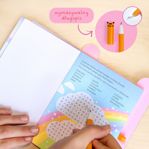 - 25 stron zadań (labirynty, zagadki, gry słowne, łamigłówki)